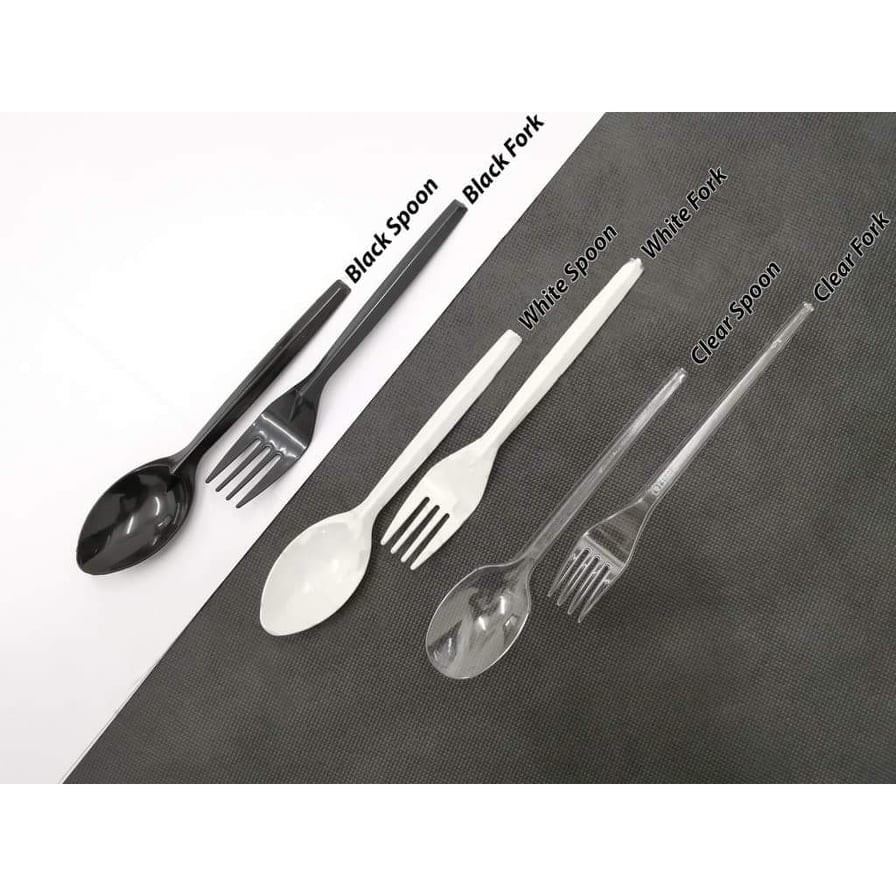 Shop Malaysia 50pcs Transparent 6 5 Disposable Plastic Spoon Fork Tableware White Clear Black Takeaway Sudu Garpu Plastik Shopee Singapore