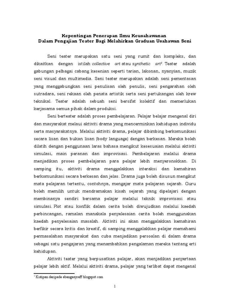 Kepentingan Penerapan Ilmu Keusahawanan Dalam Pengajian Teater Bagi Melahirkan Graduan Usahawan Seni Pdf