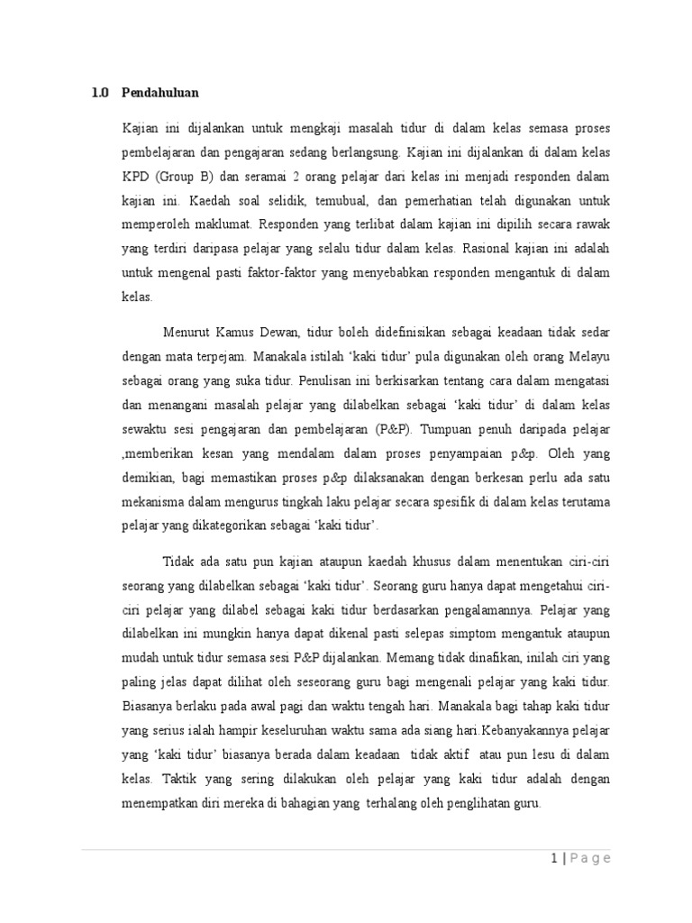 Kajian Tindakan Masalah Tidur Di Dalam Kelas Pdf