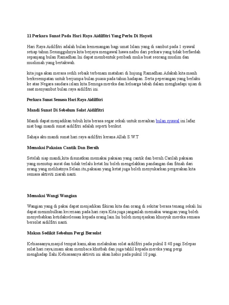 11 Perkara Sunat Pada Hari Raya Aidilfitri Yang Perlu Di Hayati Pdf